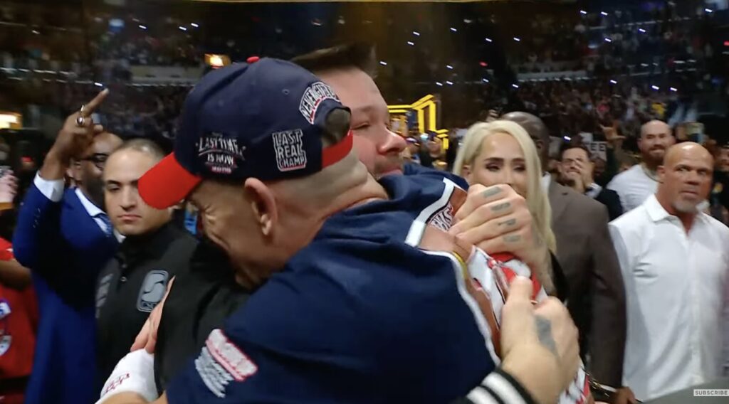 Eventually, with almost a smile on his face, tapped out. The cameras showed several children and adults crying in the crowd and they chanted “bullshit” as Gunther celebrated.